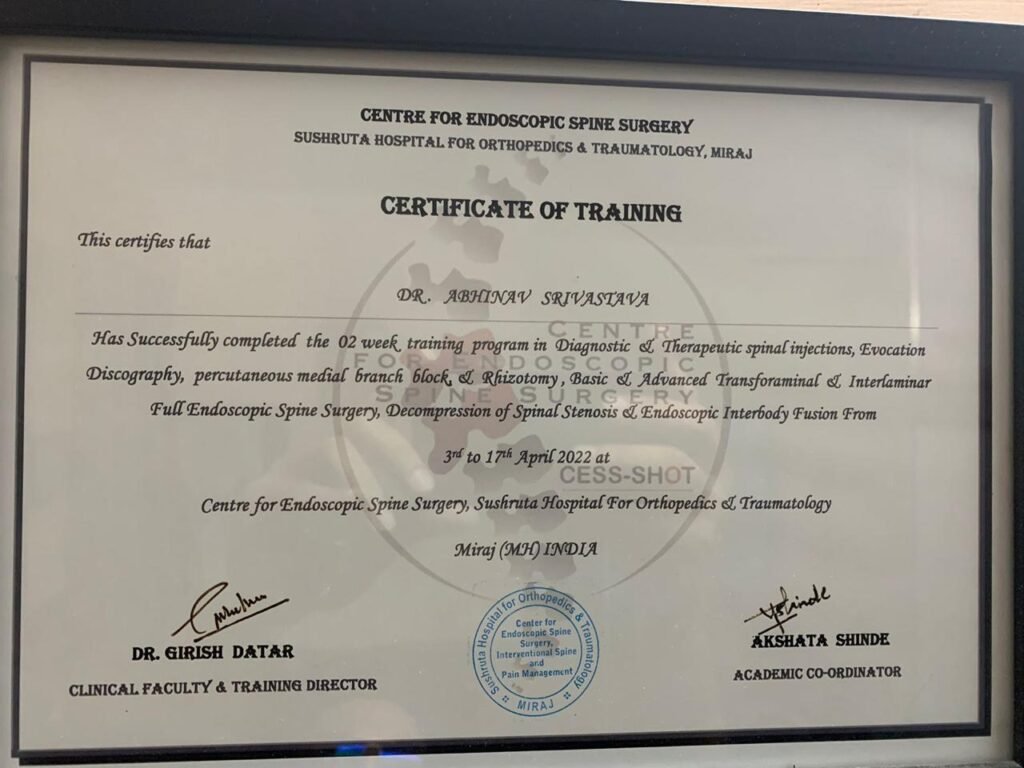 Dr. Abhinav has earned recognition for his excellence in spine surgery, receiving honors from leading medical institutions for his skill in minimally invasive techniques. His work has been featured in reputed journals, and he is a regular speaker at national and international spine conferences, reflecting his commitment to advancing patient care.